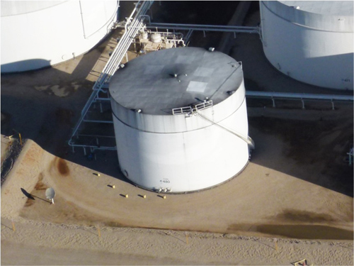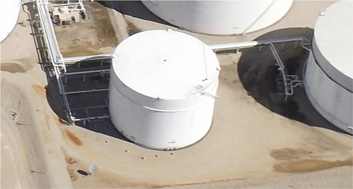 FIG. 1. In a field trial, researchers from the authors’ company compared different coating formulations—with and without an antimicrobial additive—applied to the top of a large aboveground ethanol storage tank. A fast-cure epoxy mastic, an epoxy polyamide topcoat and an aliphatic, acrylic polyurethane comprised the coatings.