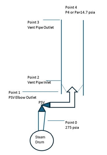 Using the ASME method to identify an oversized vent. At a client’s facility, the steam boiler is fitted with an umbrella-type PSV with a setpoint of 275 psia. The PSV is expected to relieve 48,000 lbs/hr of saturated steam. The size of the PSV elbow is 4-in. nominal pipe size (NPS), and the size of the vent pipe at the elbow outlet needed to be evaluated. The choice was to select a 6-in. vent pipe or an 8-in. vent pipe.