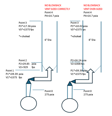 FIG. 2. Example calculation using B31.1 methodology for an oversized 8-in. vent and a normal 6-in. vent.