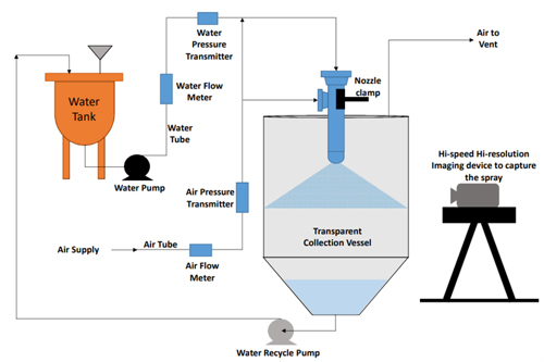 FIG. 2. Process flow diagram of the spray test bench facility.