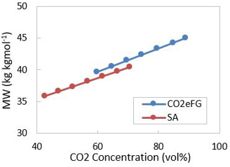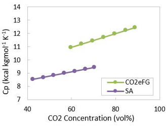 Takeaways. The FCCU contributes 25%–35% of refinery CO2 emissions. By adopting oxy-combustion in an FCC regenerator, the CO2 concentration can be increased from 15 vol% to 90 vol% in flue gas. Flue gas molecular weight and specific heat increases from 32 g mol-1 to 45 g mol-1 and 8.7 cal mol-1K-1 to 12.5 cal mol-1K-1 due to higher CO2 concentration. Because of the higher CO2 concentration, the flue gas enthalpy increases up to 1.4 times of the Base Case flue gas enthalpy depending on the flue gas composition and the regenerator temperature. For a given feed throughput, the overall flue gas molar flowrate can be reduced up to 30%, leading to reduced gas superficial velocity in the regenerator.