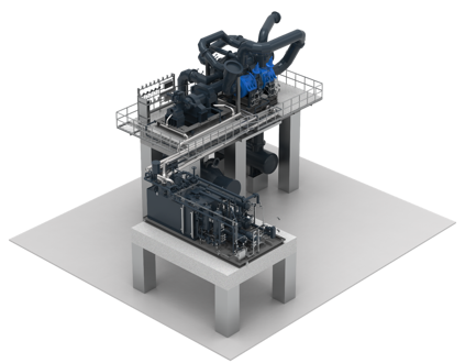 3. Companders in nitrous oxide removal. Companders can be employed with low gas flows, such as in the removal process of nitrous oxide from exhaust gas streams. Nitrous oxide is a highly potent, tightly regulated greenhouse gas and is often an undesired byproduct during industrial processes. For lower flows such as in this example, Atlas Copco’s single-lift compander design is often utilized, meaning the motor, oil system and seal-gas system are integrated onto a single lift skid.