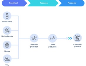 About Blue Circle Olefins. Blue Circle Olefins is a scale up focusing on building a future proof chemical industry in Europe by the production and sales of circular olefins as a dropin replacement for its fossil based equivalents. Using green methanol, produced from mixed plastic waste, agricultural and forestry residues, provides the Netherlands and Europe with a commercially viable pathway to produce fossil free plastics and chemicals. The production facility will also contribute to local security of supply and reduce the dependence of oil and gas imports into Europe