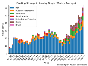 - Volume stored in Asian waters has tripled since September to 3-yr high