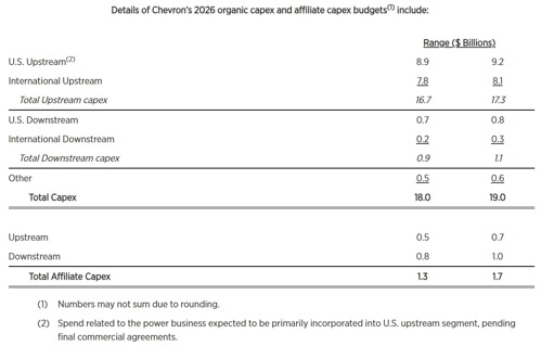 Chevron announces $18 B-$19-B CAPEX budget for 2026