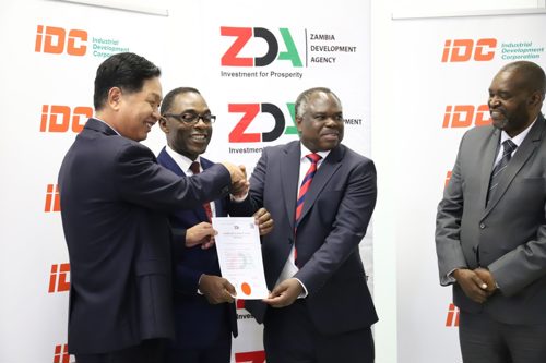 Xiang Xin Holding Co. Ltd. Chairman Tieming Huang expressed gratitude to ZDA, IDC, and the Government for their support and facilitation. The event was also witnessed by Phestos Musonda, developer of the Sub Sahara Gemstone Industrial Park.