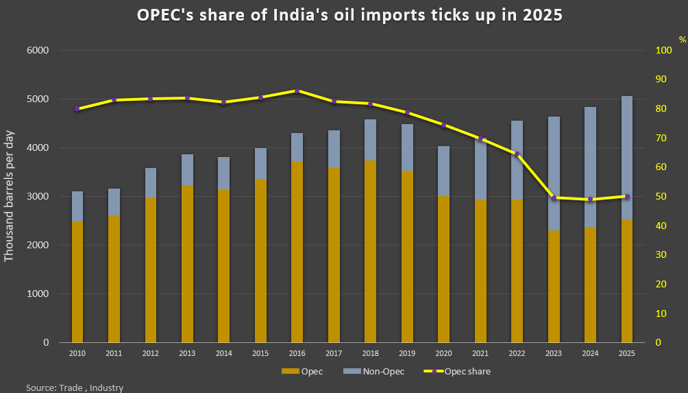 - OPEC's share in Indian oil imports rises