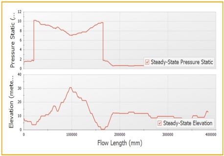 As shown in FIG. 4, the elevation of the point where cavitation is occurring is at an elevation of 17.2 m from grade. While locating this point in the piping model of the system, it was observed that this point is the inlet of the heat exchanger which is located at an elevation of 17.2 m from grade. A piping elevation of 17.2 m is quite high for a system handling saturated liquid (liquid at its boiling point). However, the volume of the vapor cavity and the time for which it lasts in the system’s piping will decide whether this cavitation is an actual risk for the system or not.