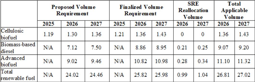 Last year, EPA took action on the backlog of Biden-era small refinery exemption (SRE) petitions and in September 2025 issued a supplemental proposed rulemaking to account for SRE decisions. Today, after considering relevant comments, data, and analyses received, EPA is also finalizing a 70 percent partial reallocation of the 2023–2025 exempted Renewable Volume Obligations for the 2026 and 2027 compliance years. This approach will balance a number of factors that come into play when considering volume requirements and the impacts of SREs, including protecting biofuel demand while maintaining a stable and functioning credit market.